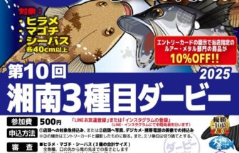 おはようございます、かめや釣具平塚店です!またまた始まります!第10回2025 湘南3種目ダービー10/10(金)よりエン…
