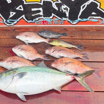 辨屋様にて真鯛、青物の釣果上がっております。エサは二刀流、黄色のムキエビに反応が◎そのほか、モエビや黄色のダンゴにもよくあたっていたそうで、ローテー…