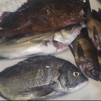 南伊豆の地磯にてフカセ釣りで35cm前後のメジナが4匹釣れたようです。潮が動いたタイミングで連続でヒットしたようです。
