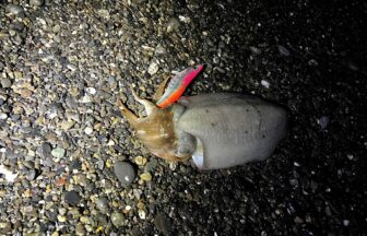 小田原沖にてヤリイカが釣れております。 サイズは25cm~38cm、釣果の良い人で50杯程釣れております。仕掛けはプラ角11cmを使用したブランコ仕掛け、オモリ120号を使用。