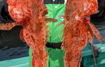 網代沖にてオニカサゴが好調に釣れてます。