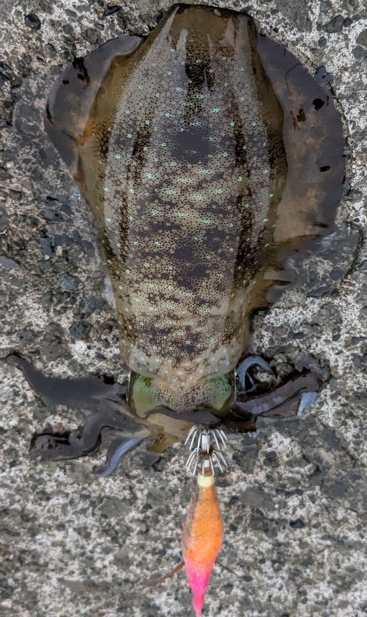 釣り方はエギングでヒットエギはヤマシタ・エギ王LIVE3.5号オラオラマンゴーでした。