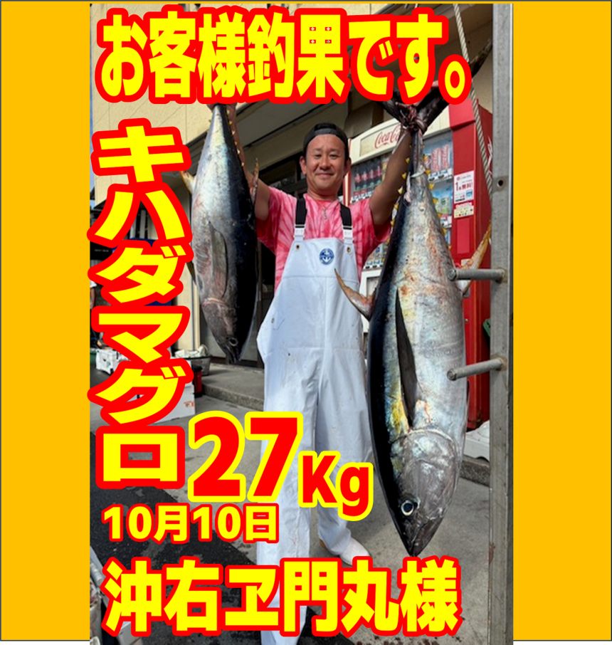 お客様釣果です。相模湾内にてキハダマグロ8kg~27kgが2本釣れたそうです。
