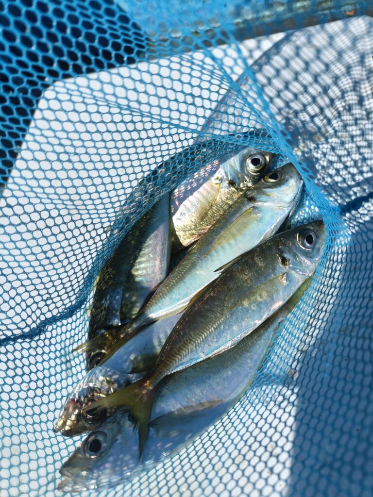 朝6時、まずアジを釣って泳がせ仕掛へ。