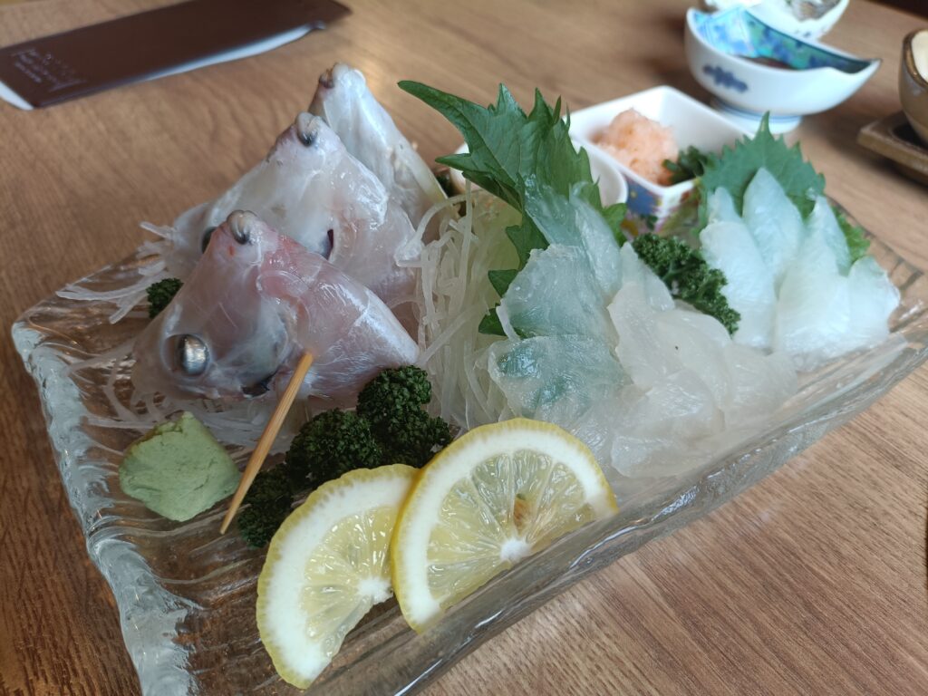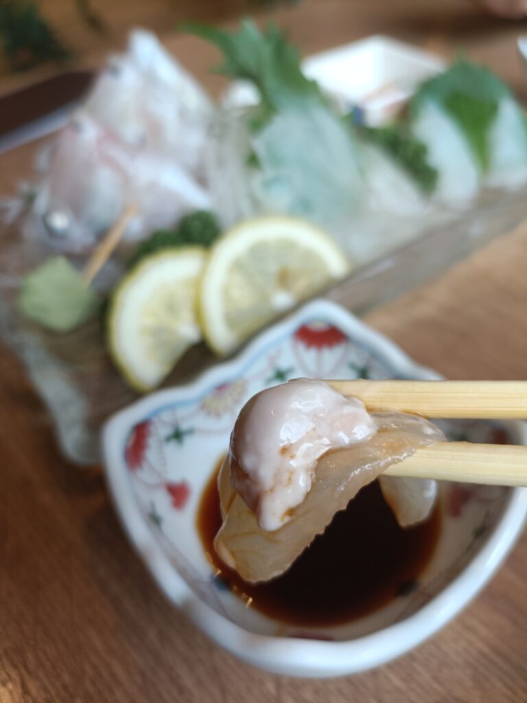 釣った魚は豊浜の食事処「らんたん」さんに持ち込み、肝醤油でいただく贅沢な締めくくりでした。