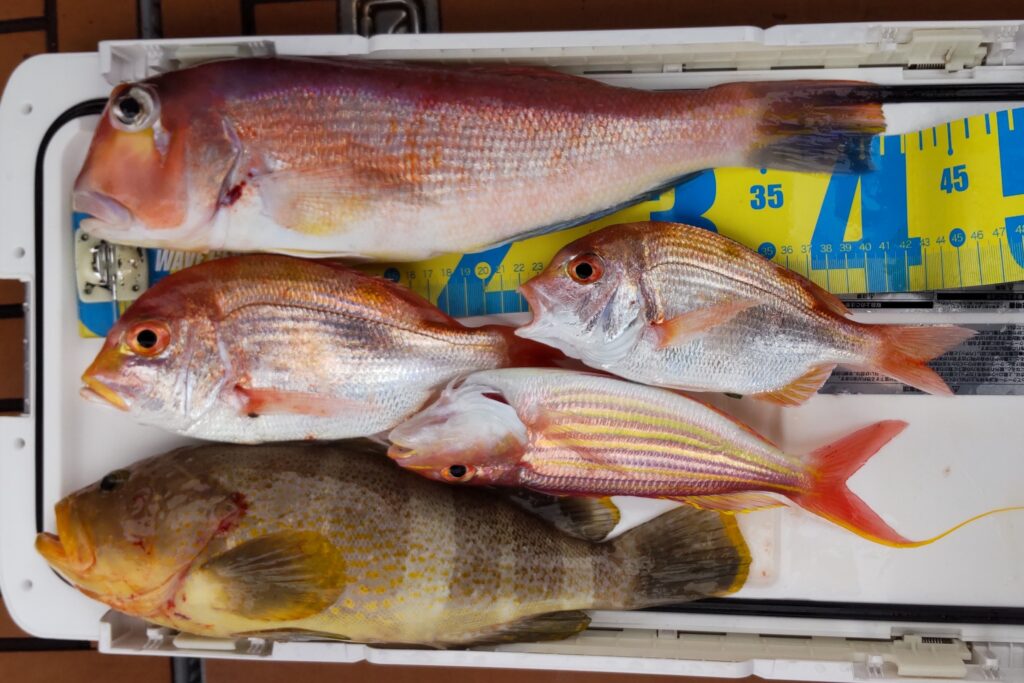 当日は風も弱く、あまり船が流れない状態でしたが狙いのアマダイが船中全員に釣れ、おまけに美味しい魚もいろいろ釣れたとのことです。