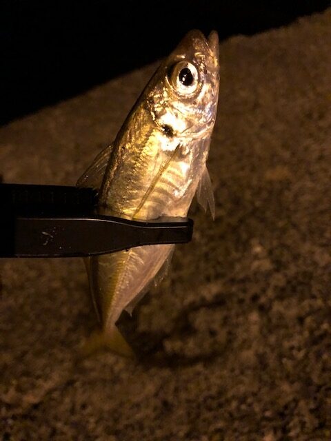 沼津周辺港にて、夜間釣行でアジ19㎝迄までが23匹釣れたとの事です。