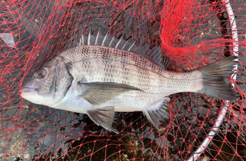 御前崎エリアでフカセ釣りで35cm前後の黒鯛が3匹釣れた様です。干潮前後で連続でヒットし、黄色に染色されたオキアミに反応が良かったようです。
