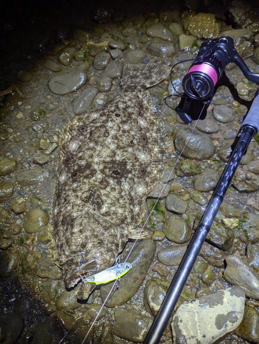 相模川河口にてヒラメが釣れたそうです。