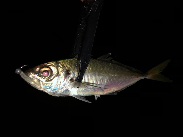 西伊豆周辺堤防にて、夕マヅメ~釣行でアジ22㎝迄までが15匹釣れたとの事です。