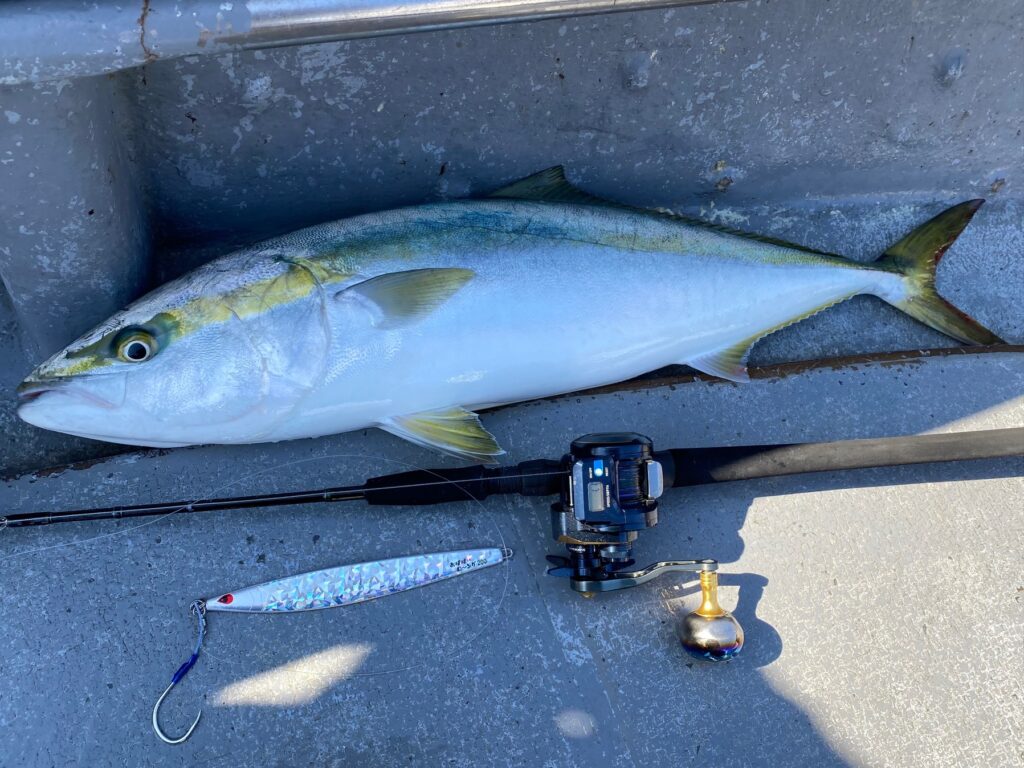 この日は潮が動かず苦戦しましたが、ロングジグをしっかりシャクってなんとか2本獲れました…!