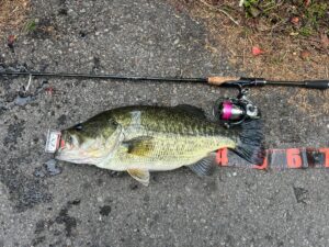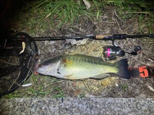 なんとなく去年爆釣したサイコロラバーの3.5gダウンショットを足元に放り込んでボトムジャーク。「釣れないな・・・」と気を抜いていたらいきなりゴツン!!とひったくられるようなアタリからの丸々と太った47㎝をキャッチ!!