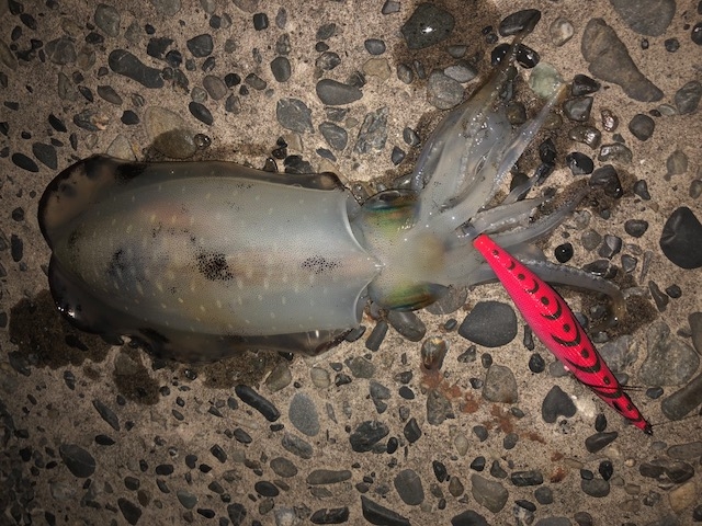 沼津周辺堤防にて、夕マズメにアオリイカが2杯釣れたとの事です。