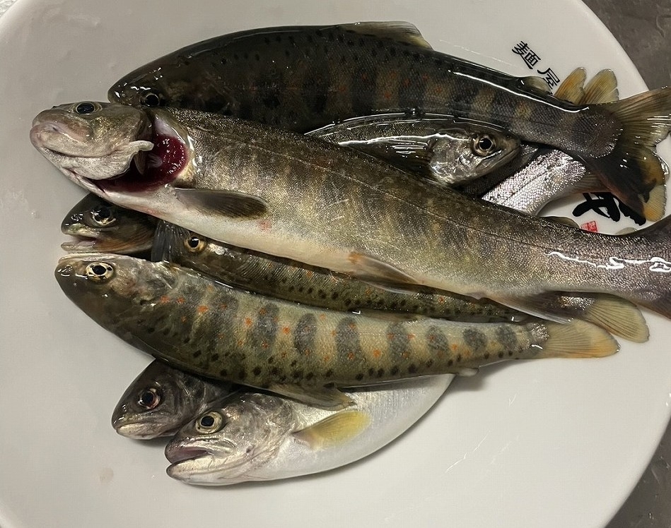 郡上高鷲地区での渓流釣りに、アマゴ16~22㎝、イワナ25㎝程が9匹釣れたそうです。5.4/6.3ズームロッド、を使用ですが終始5.4mで使用。水中糸ナイロン0.25号、ハリス0.4号、針アマゴ6号です。餌は川虫を使用。