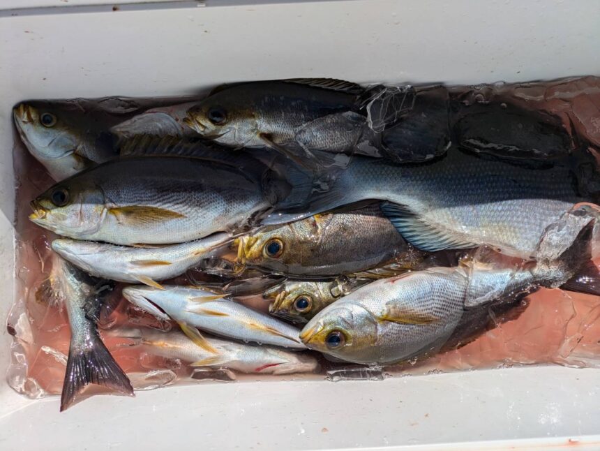 網代沖にてイサキが釣れております。