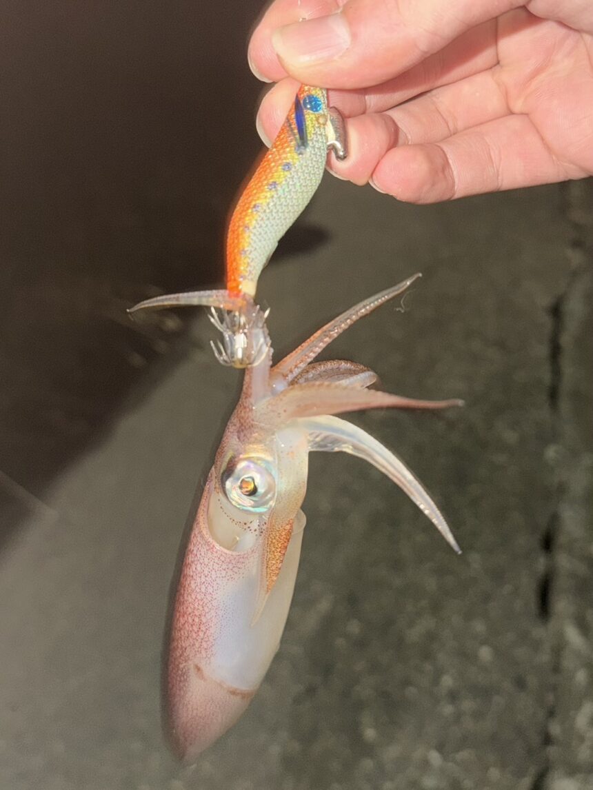 小型のエギを使用したエギングで狙い、4杯程釣れたそうです。