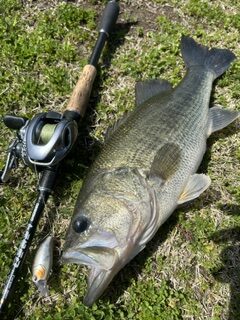 前日の雨上がりで風が強く濁りが入っていたのでクランクベイトで1日巻き倒してブラックバス48cmまで4匹、ナマズ4匹と春爆🔥
