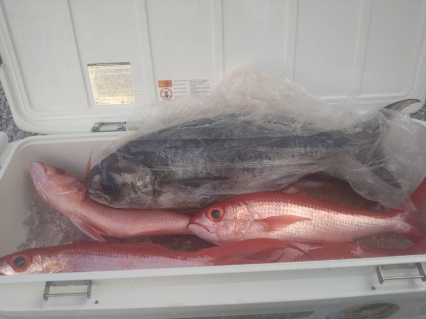 お客様釣果です。南伊豆沖、離島遠征船での五目釣りで目鯛、オナガダイが釣れたそうです。