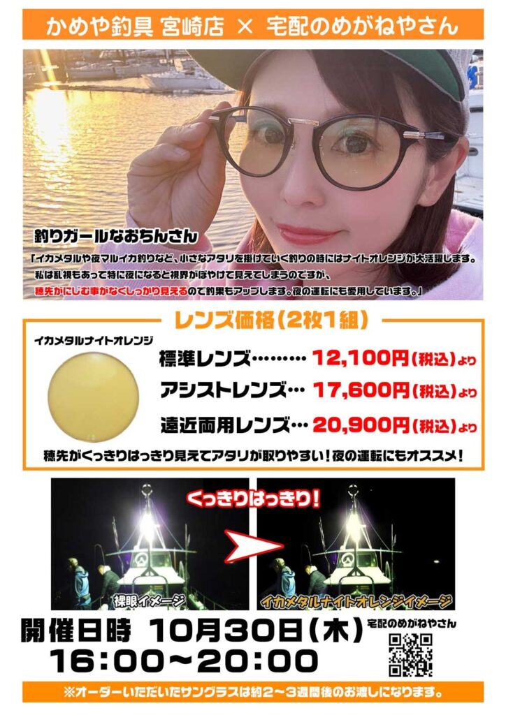 大人気の夜釣り専用サングラスナイトオレンジを始め、多種のカラーも展示されます!