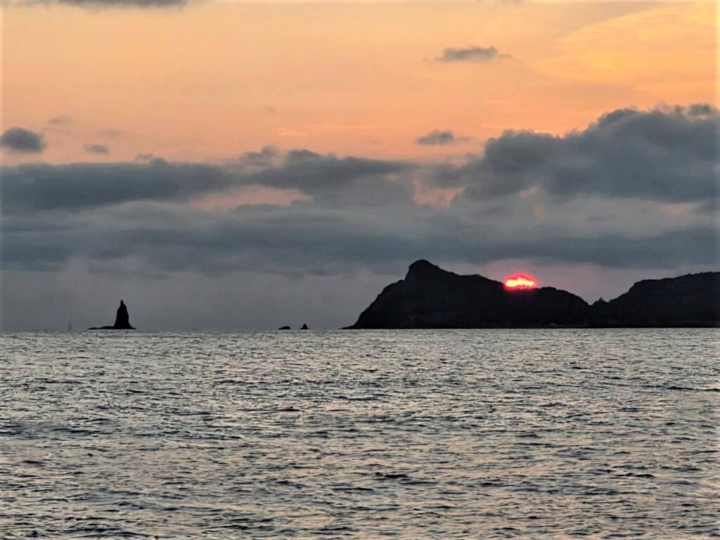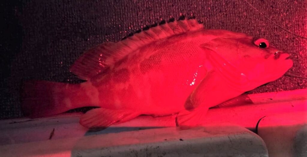俄然やる気が出てきます!が、すぐに陽は沈み…船上は真っ暗。(海に光が差し込まないように、下からの間接照明を船長が照らしてくれますが)穂先に付けるケミホタルと赤いヘッドライト(波長が短いので水中への影響を最低限にする為)が必須アイテムです。