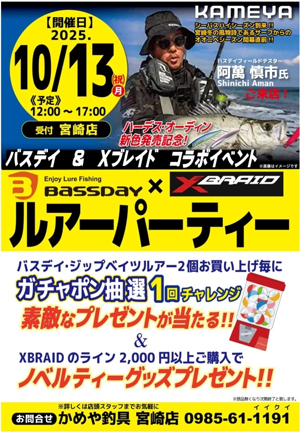 明日、10月13日は是非かめや釣具宮崎店にご来店頂きまして、