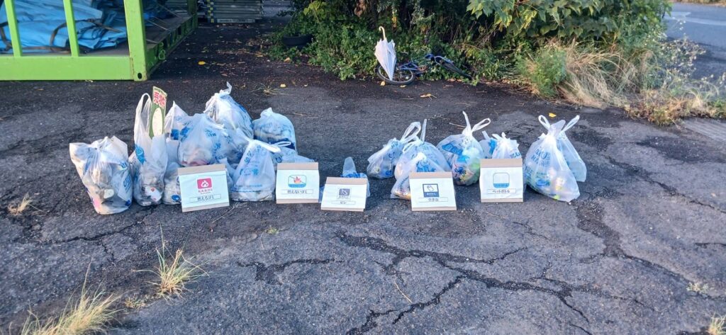 ゴミの分類別に仕分けながら、2人黙々とゴミを拾っていきます・・・。