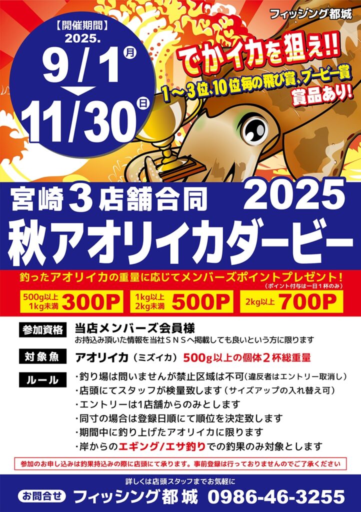 フィッシング都城では「アオリイカダービー」も開催中ですので釣れた際は当店にお持ち込みください♪