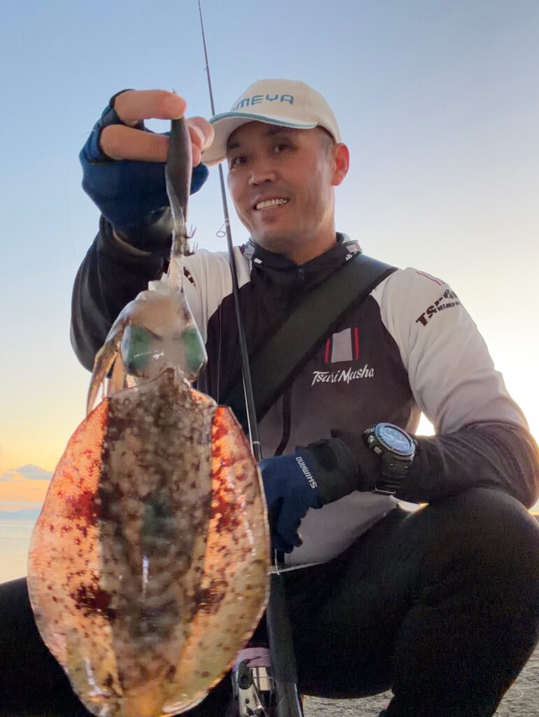 すると夕マズメにイカが極小ベイトを襲って