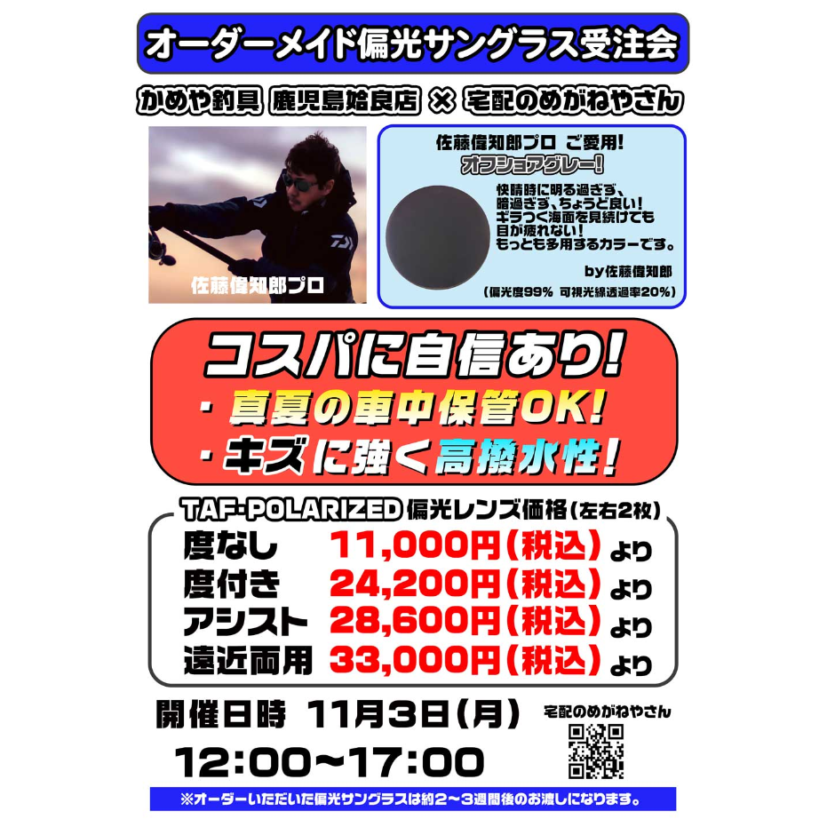 【本日開催】12:00~『オーダーメイド偏光サングラス&ナイトオレンジ受注会』開催! 鹿児島姶良店