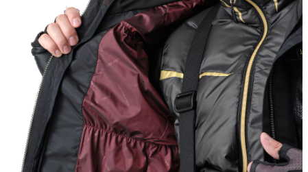 この裏地はインナーやミドラーとの滑りが良くなるためゴワつきにくく、