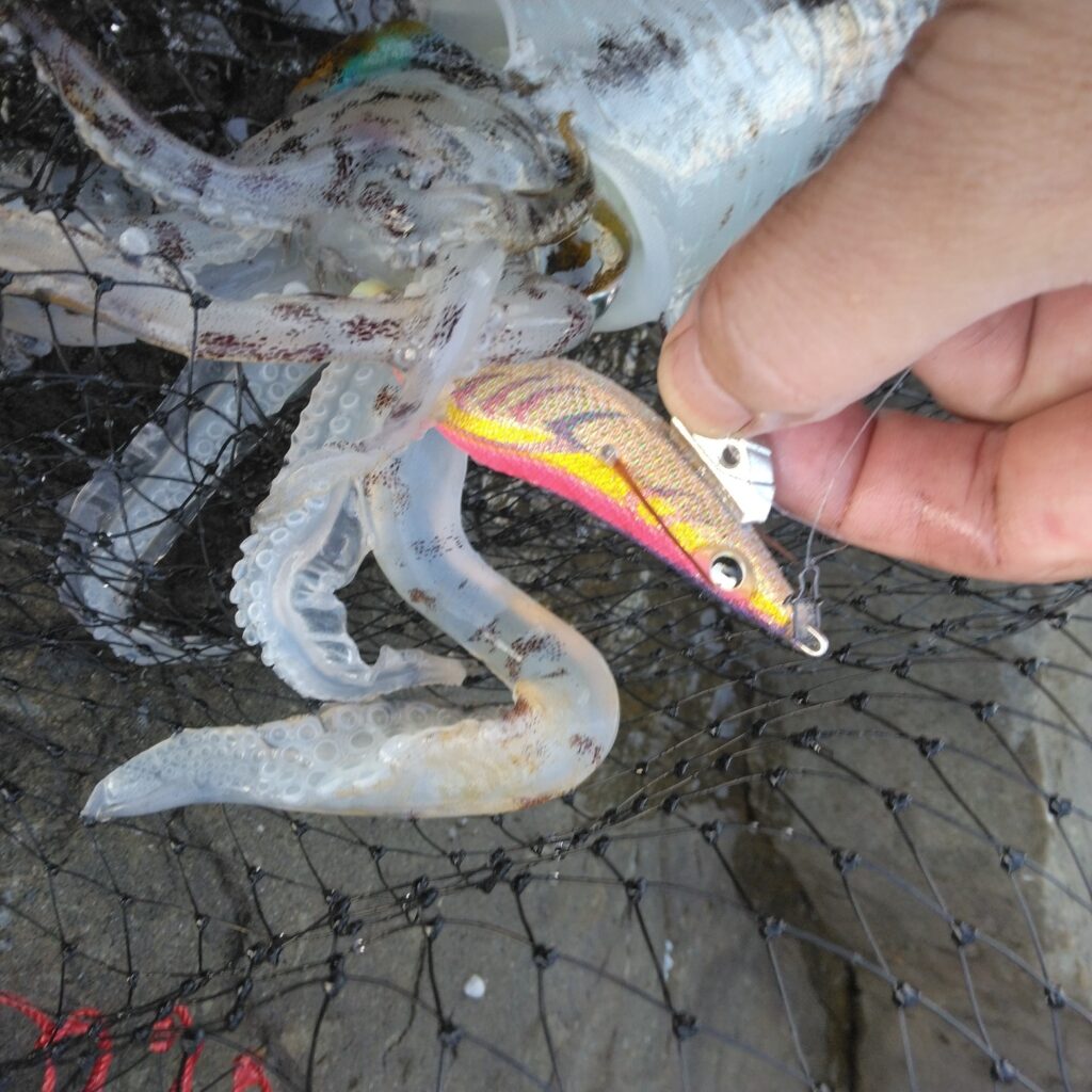 あがってきたのは800g位のアオリイカ(*^▽^*)
