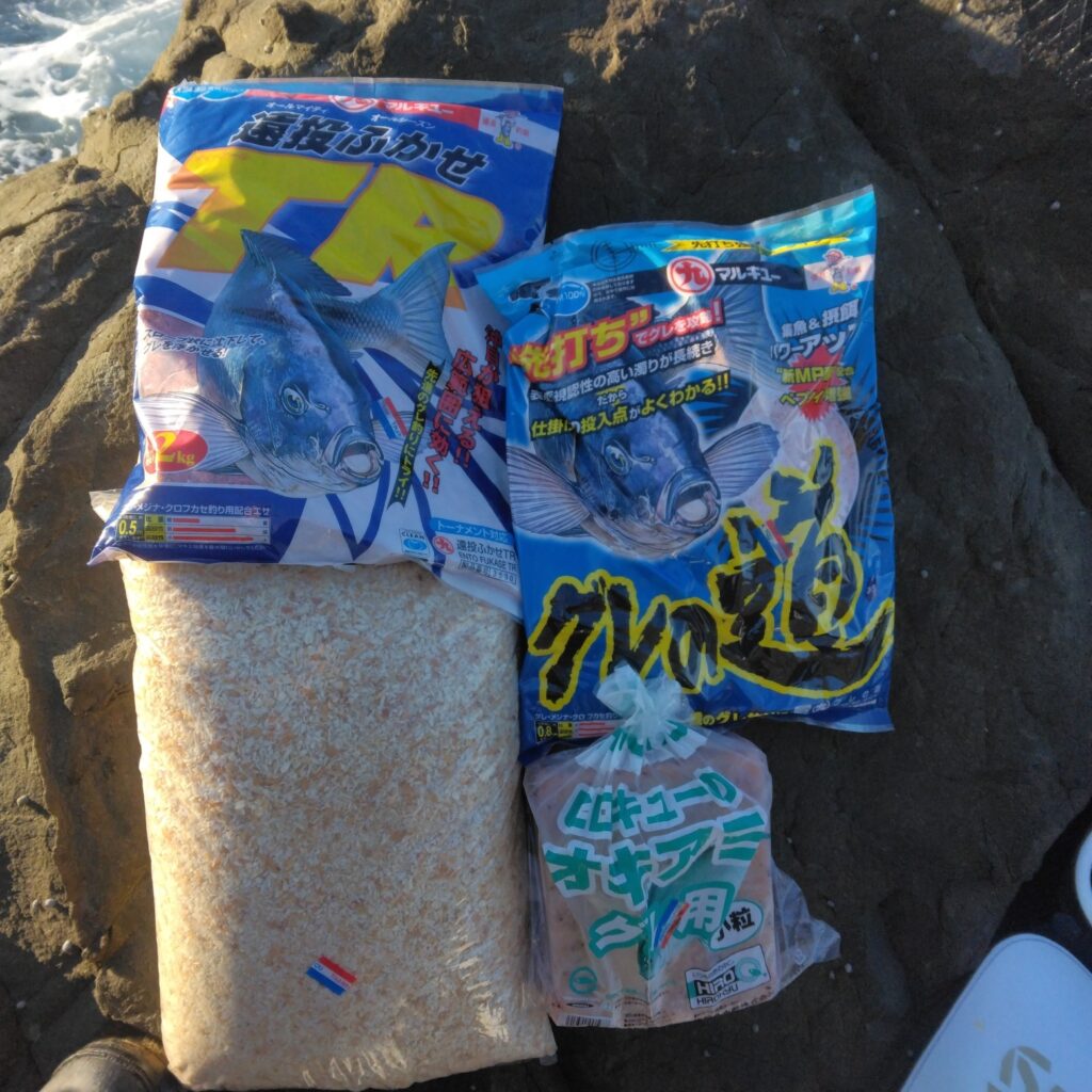遠投フカセTR×1、グレの道×半袋、パン粉×2kg