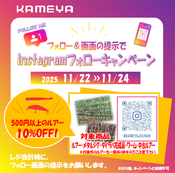 【お知らせ】お会計時にルアー10%OFF!城南店インスタフォローキャンペーン