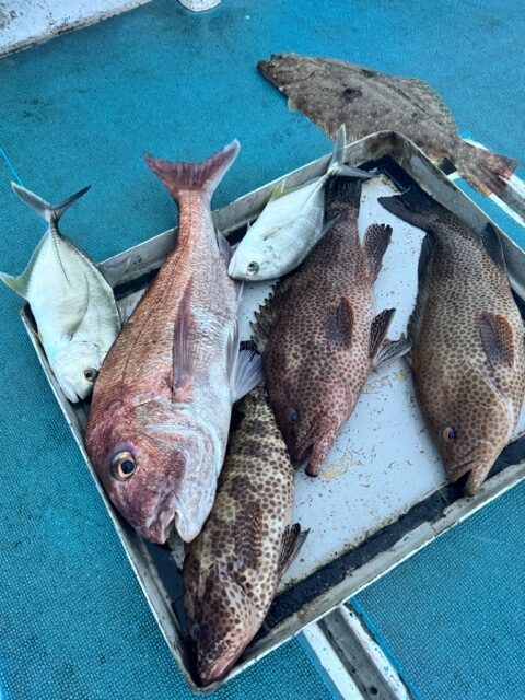 ヒラメ、メッキ、オオモンハタ、真鯛など