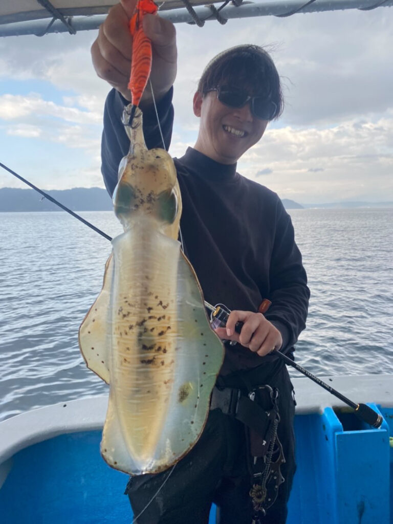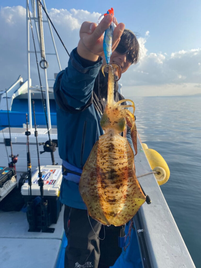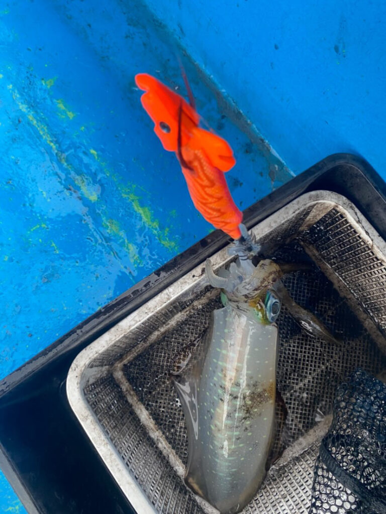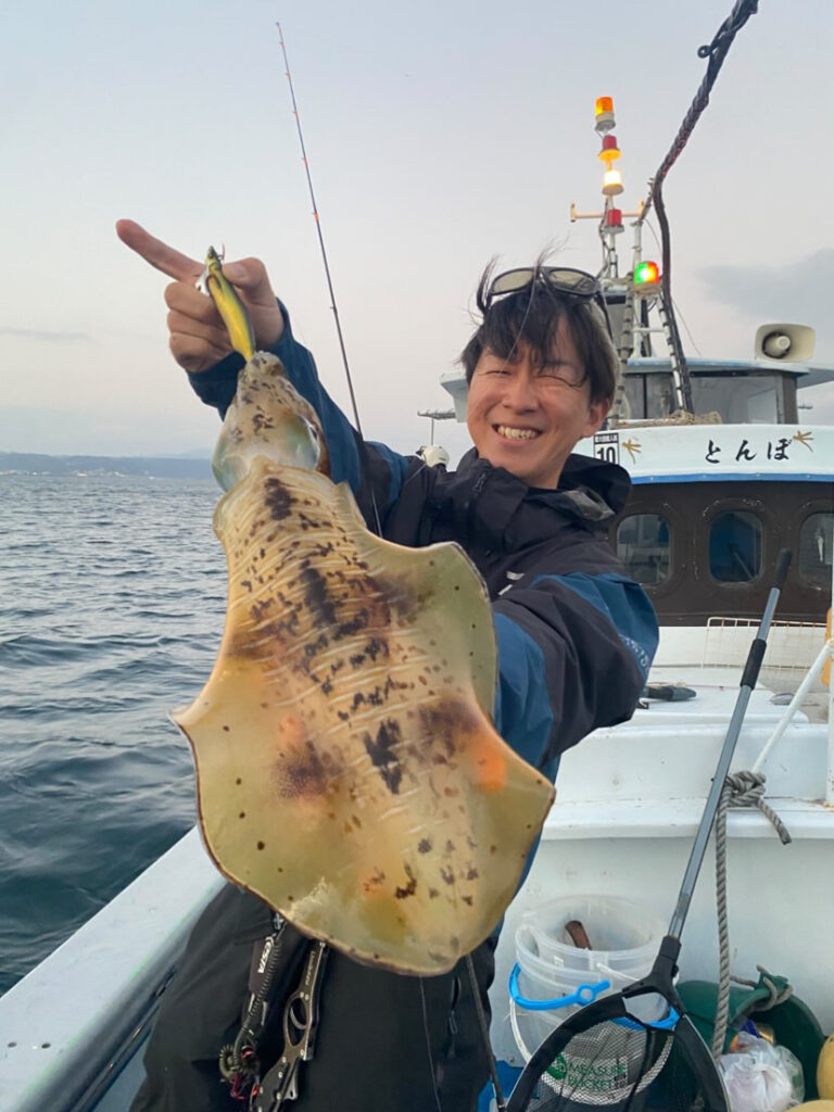 同船者の方と船長も釣れるすぎて「そのエギどこの!?」って食い気味。
