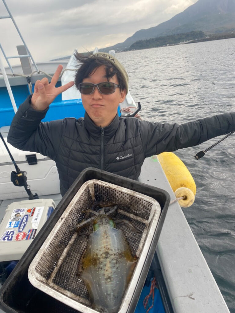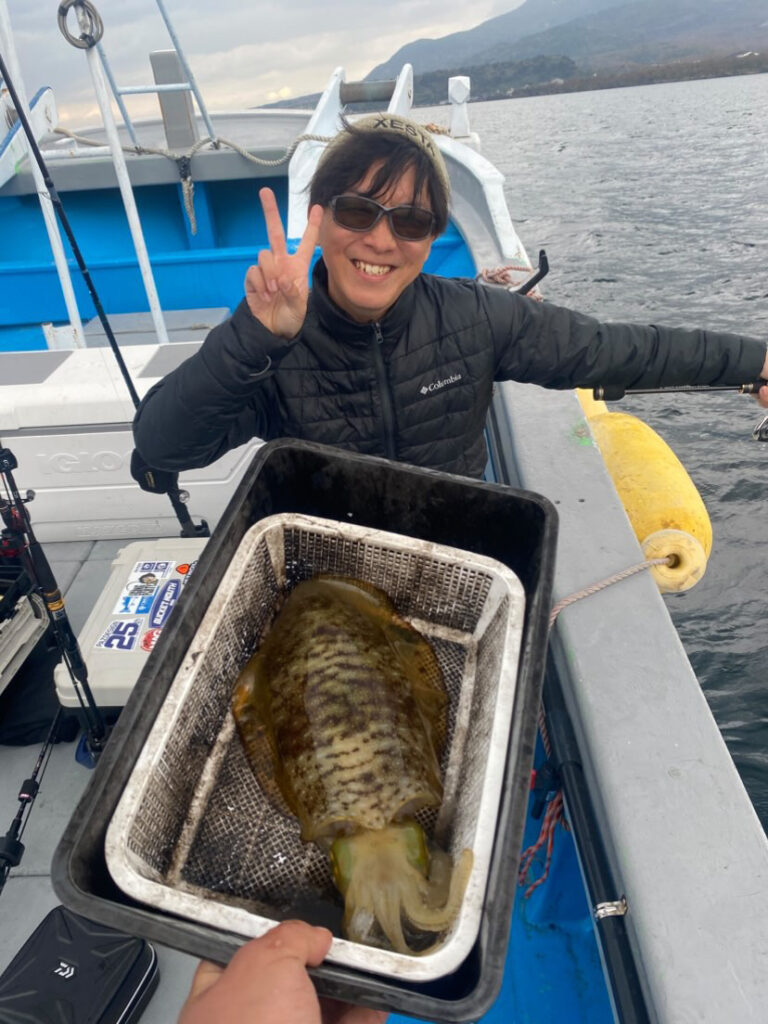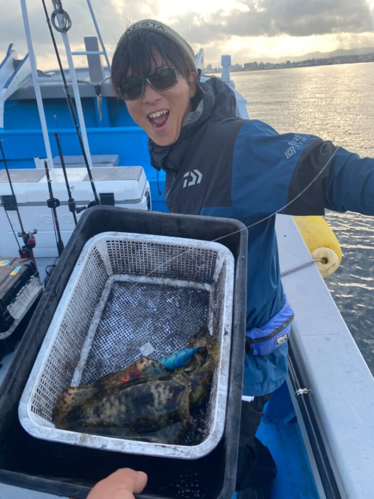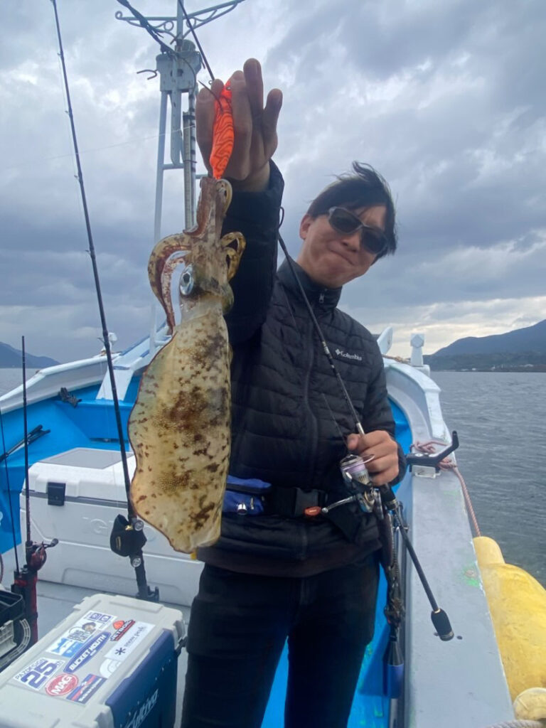 同船者の方と船長も釣れるすぎて「そのエギどこの!?」って食い気味。