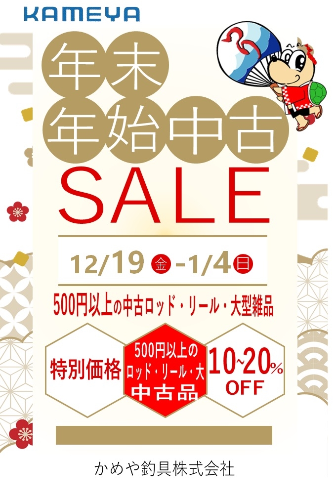 中古のロッド・リール、更には大型雑品が10%から最大で20%割引になる大変お得なセールです!