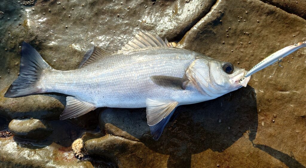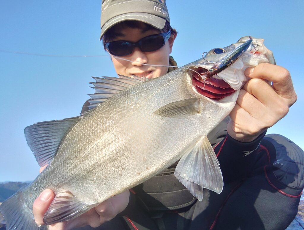 ちょっと小振りですが本命のヒラスズキでした!!(*^▽^*)