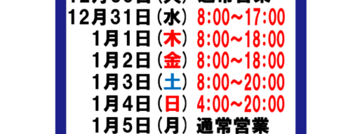 【お知らせ】年末年始の営業時間のお知らせです。 鹿児島姶良店