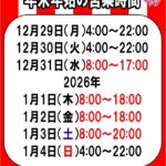 本日は、城南店の年末年始の