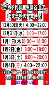 年末年始営業時間変更のお知らせです。