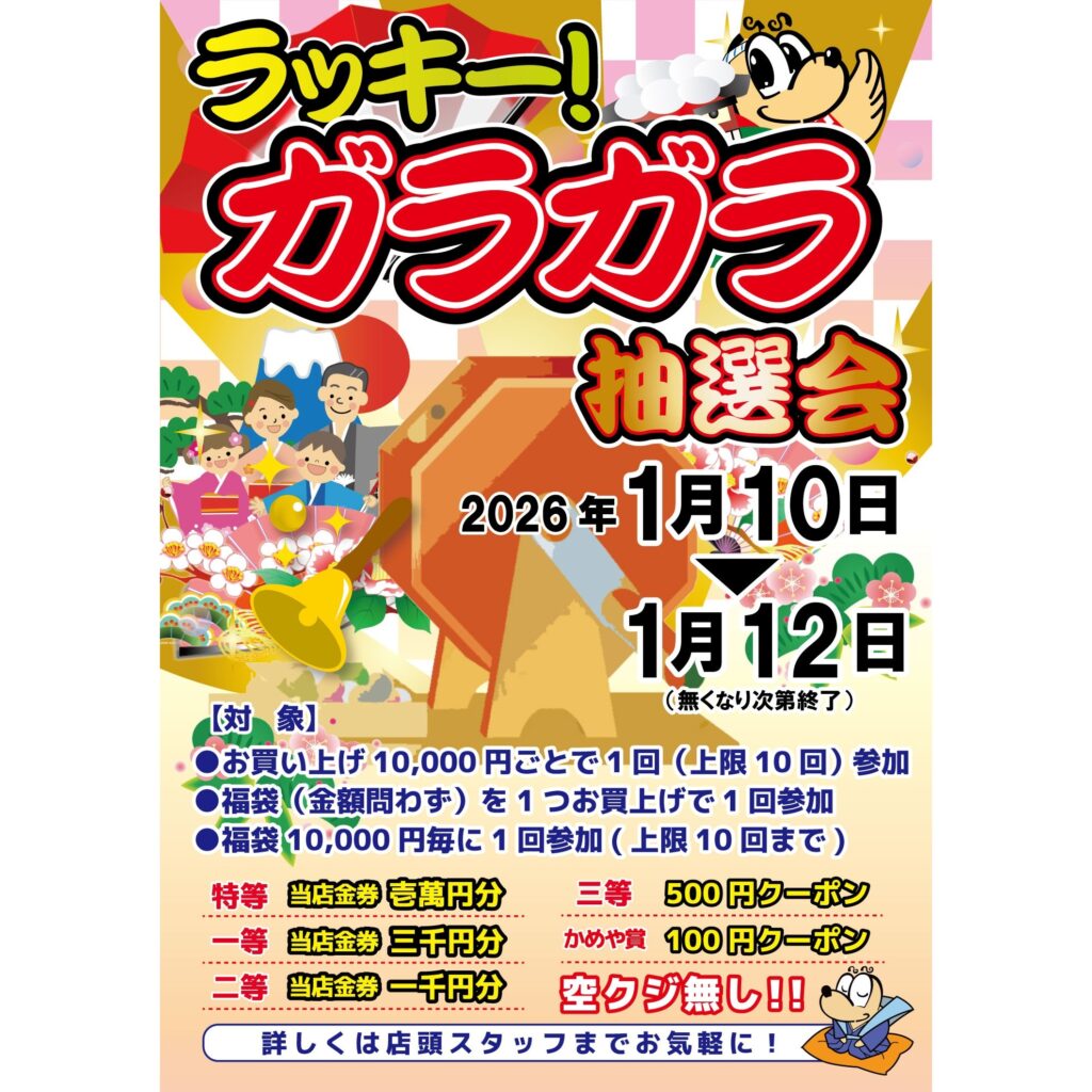 もしくはレジにてガラガラ抽選くじをお渡しされたお客様には