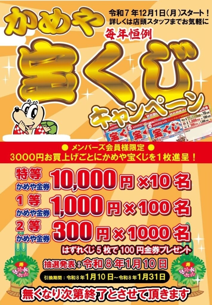 12月に先着でお配りさせて頂いておりましたかめや宝くじ