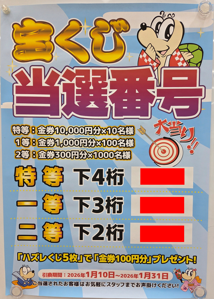 店頭発表なので、当選番号は隠してあります(*’▽’)