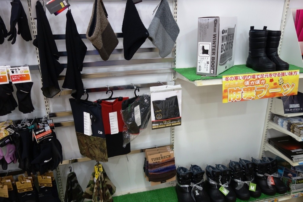防寒着・防寒グッズコーナー、大売出し中🚀-かめや釣具延岡店-