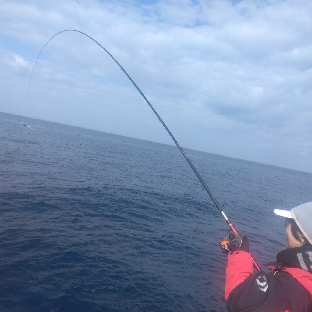 先端の方で釣っていた中野さんにアタリ(*’ω’*)