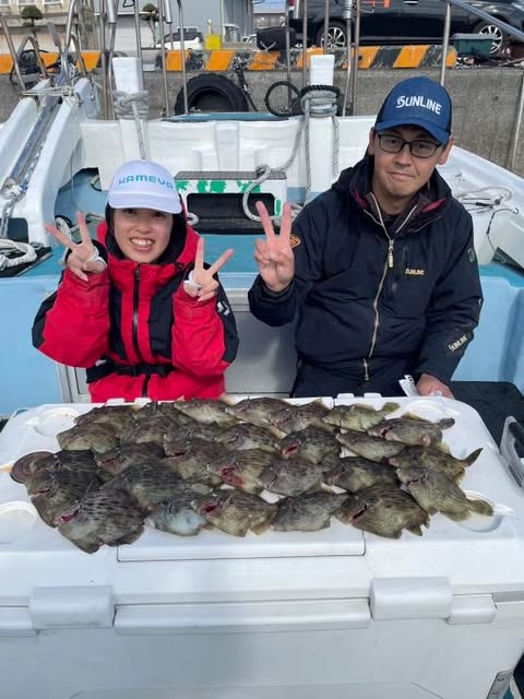 🐠船カワハギ釣り🐠に二人とも(´艸`*)