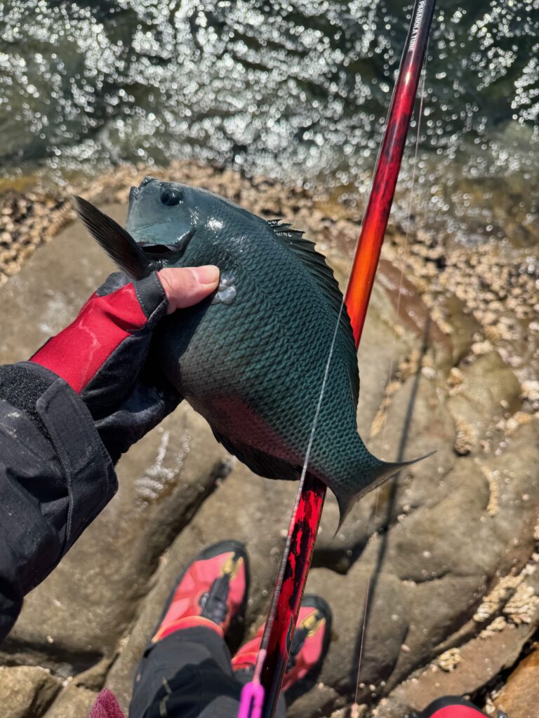 その後も、時より針は無くなりフグは釣れますが最初よりかは30cm前後のメジナは釣れ
