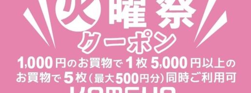 こんにちは! 姶良店中尾です! 本日は毎週恒例の火曜祭の実施日でございます! 本日ご来店し、お買い物をされたお客様全てに配布しております!! このクーポンは1000円のお買い物ごとに1枚ご利用頂けます!(2000 … 続きを読む 【お知らせ】火曜日限定配布の特別クーポン進呈中!!かめや釣具鹿児島姶良店