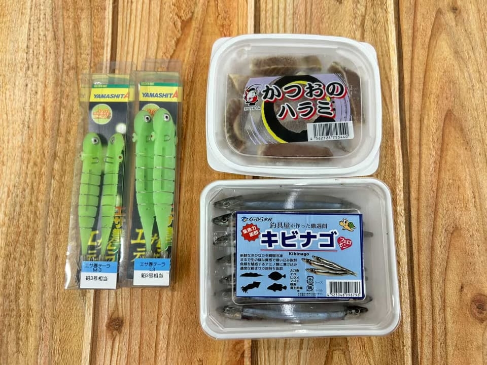 餌にはキビナゴやカツオのハラミ、冷凍ササミがオススメです!!